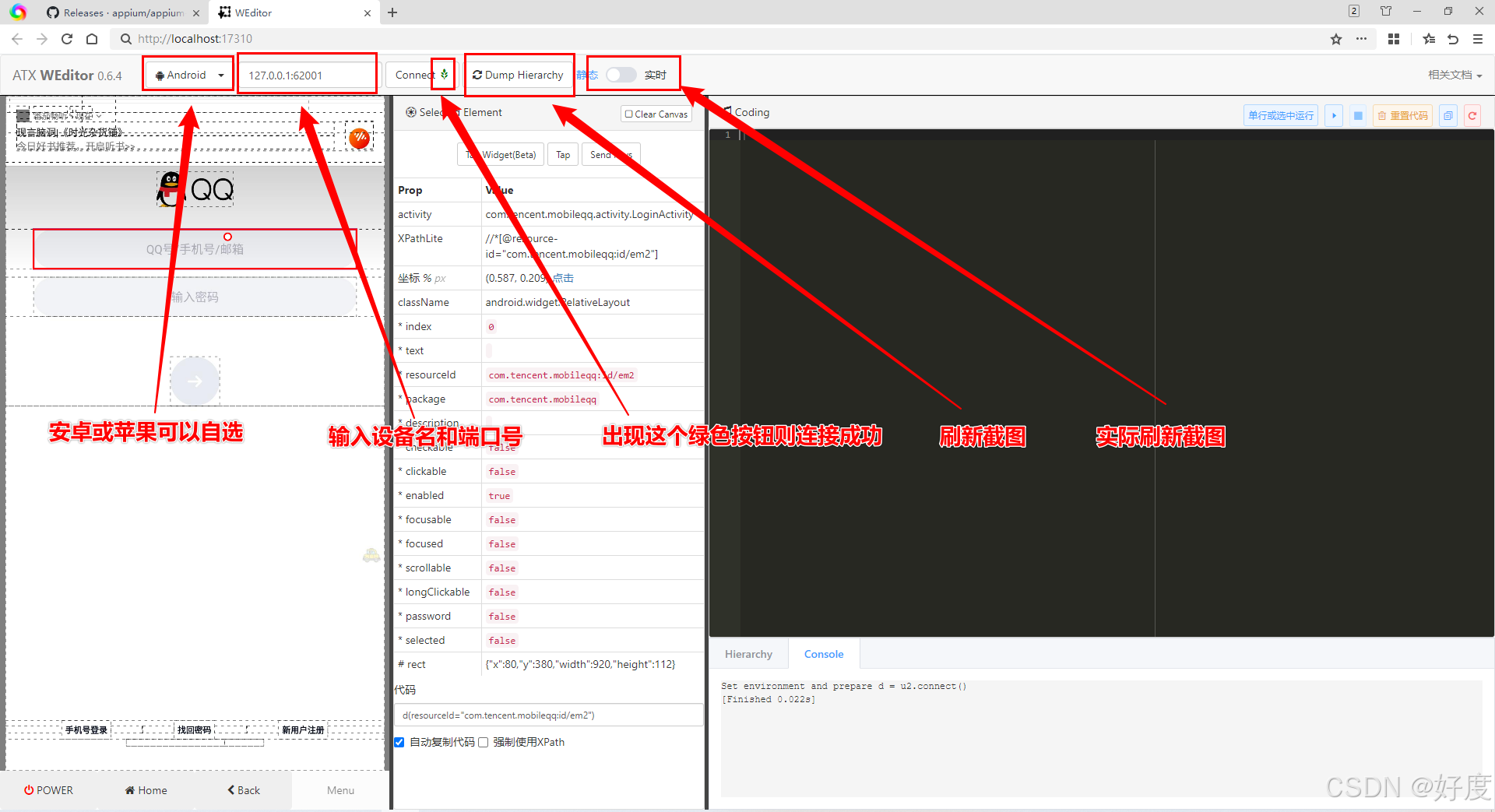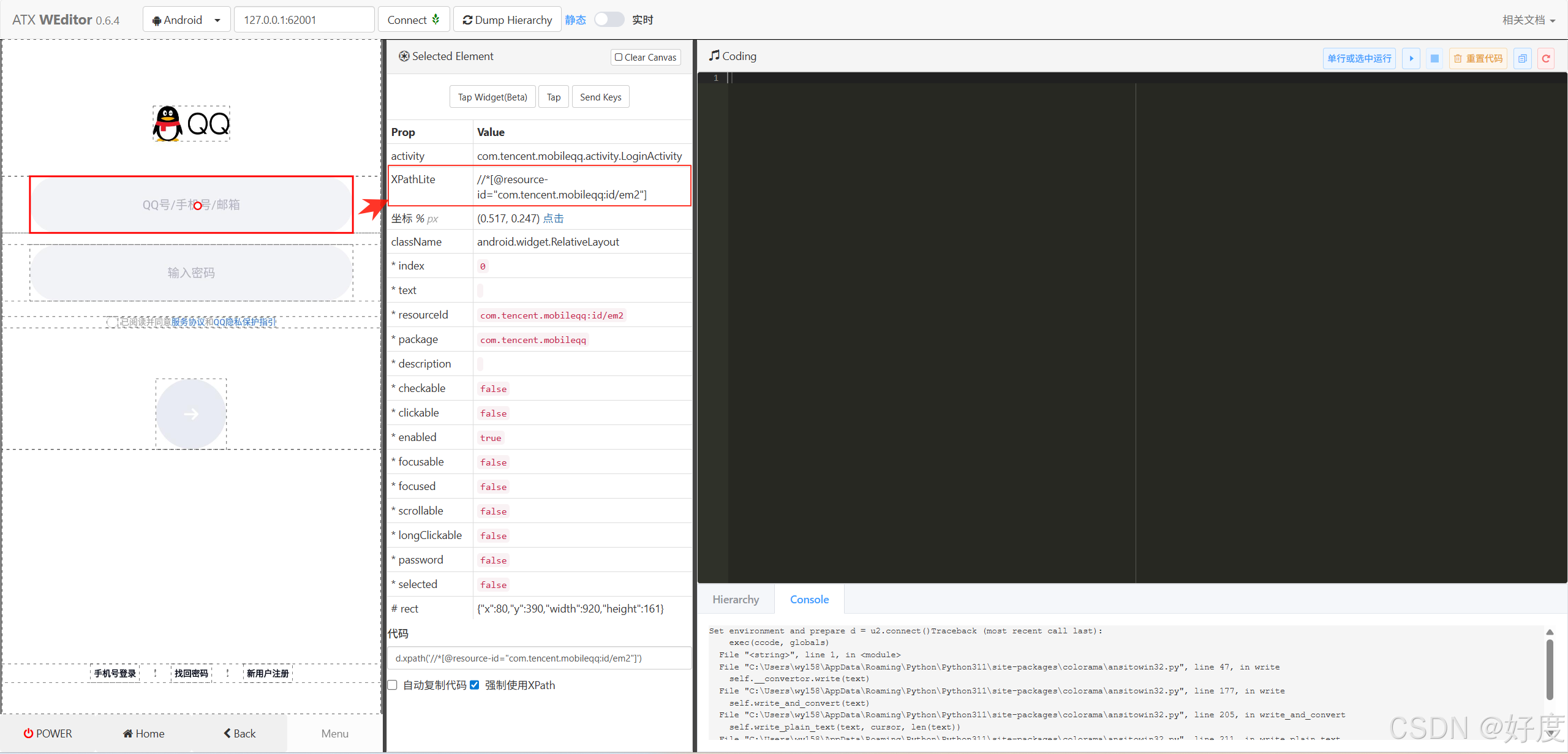 第三个工具:Weditor(UIautomator2 python第三方库 appUI自动化测试框架)建议使用