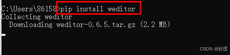 第三步,安装weditor,cmd命令:pip install weditor