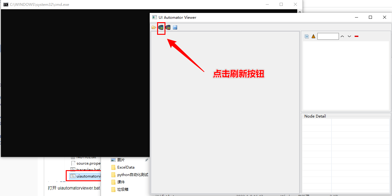 打开 uiautomatorviewer.bat ,使用之前需要连接手机或模拟器