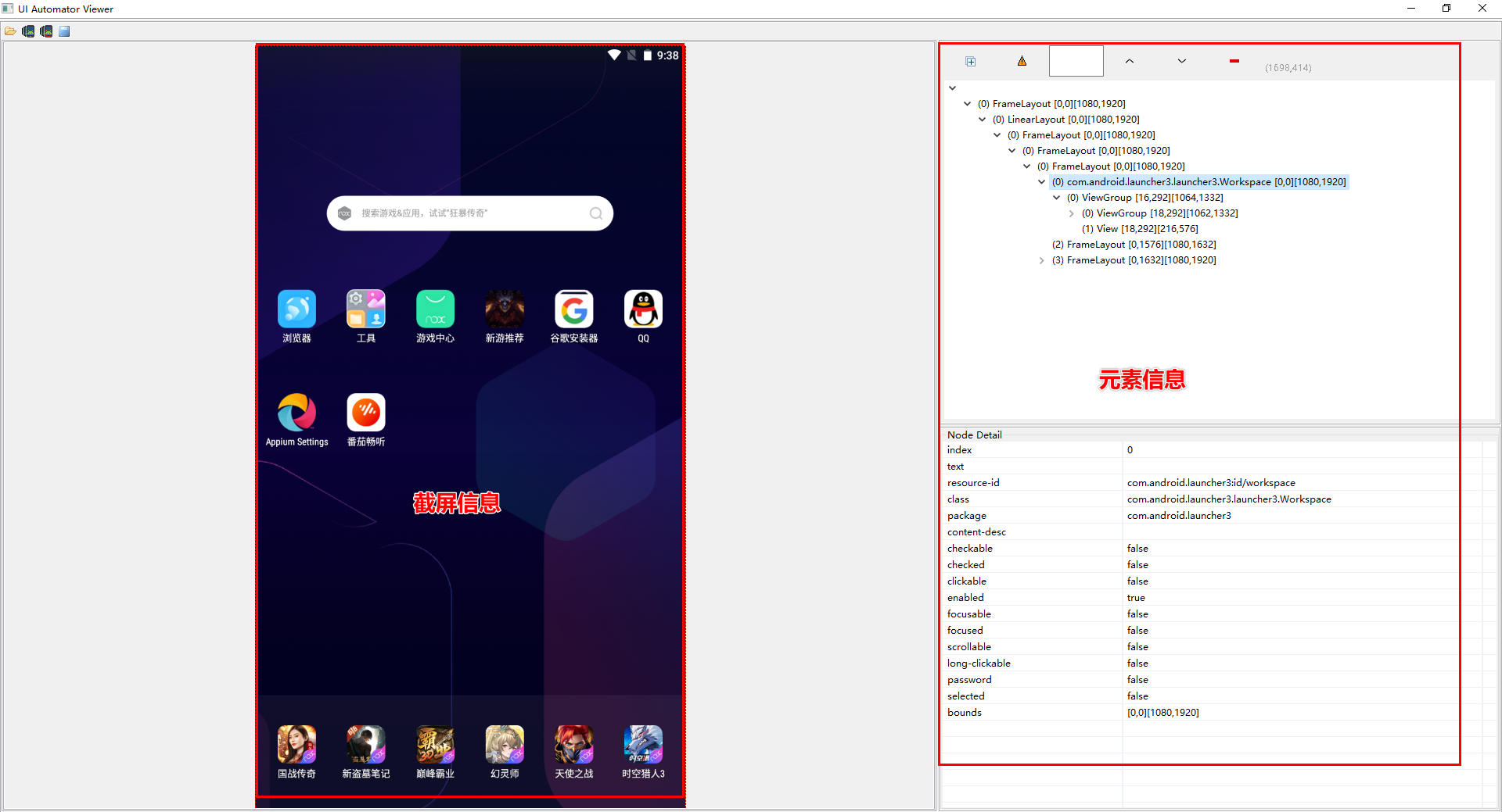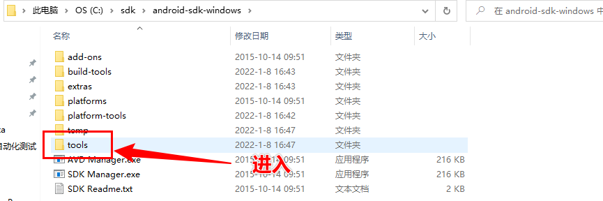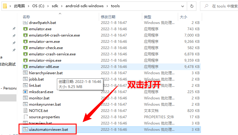 打开android SDK安装路径,进入tools,在目录最下面有一个 uiautomatorviewer.bat 这个就是工具