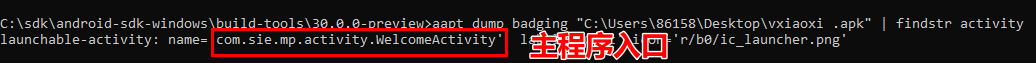主程序入口获取方法: aapt dump badging app包的路径 | findstr activity