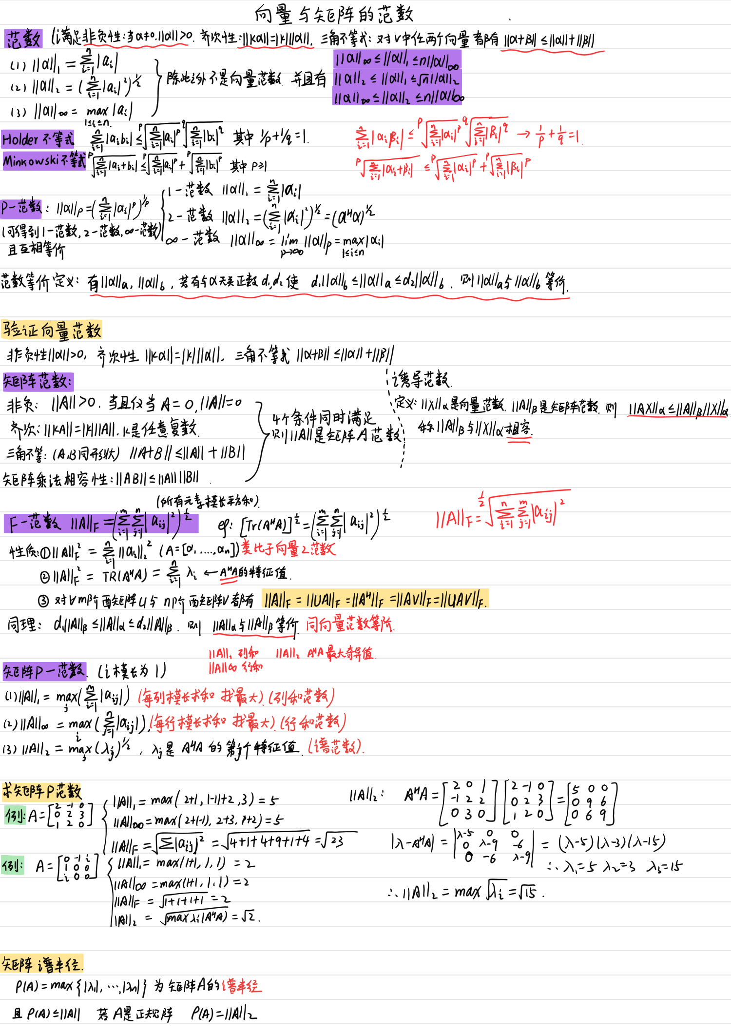 本文内容为研究生矩阵理论复习第五章 向量与矩阵范数笔记记录,包含了向量的1范数,2范数,无穷范数,以及矩阵的1范数,2范数,无穷范数,与F范数等知识内容,还介绍了谱半径