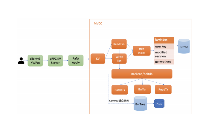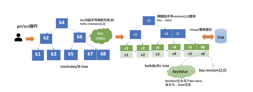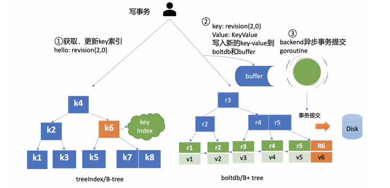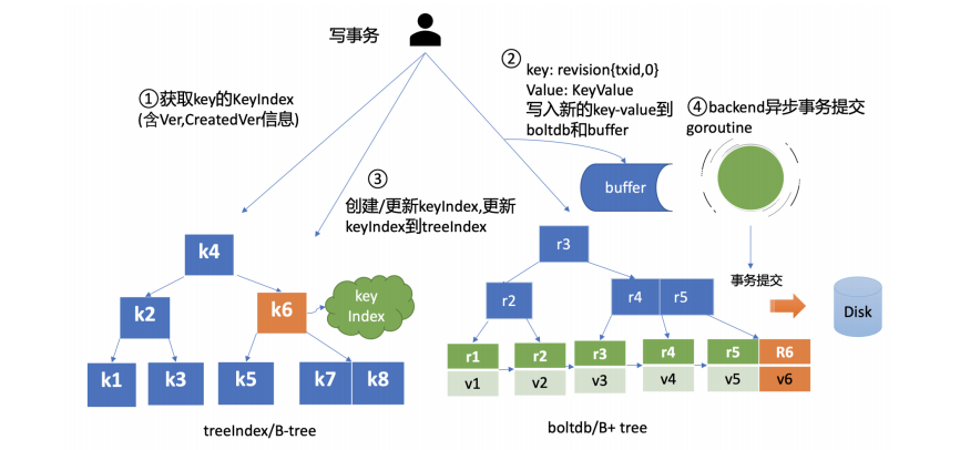 再以版本号作为 boltdb key,以用户的 key-value 等信息作为 boltdb value, 保存到 boltdb。