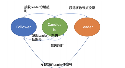 Candidate :当Follower超过一定的时间还接收不到Leader 的心跳时转变为 Candidate开始竞选。