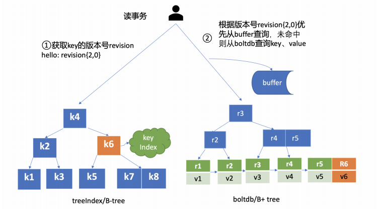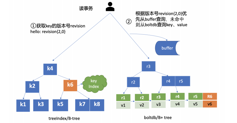 读事务对象根据此版本号为 key,通过 Backend 的并发读事务(ConcurrentReadTx)接