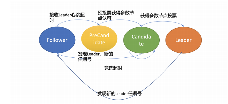 Leader: Raft算法中通过竞选而产生的处理所有数据提交的节点。Follower :竞 选失败的节点作为Raft 中的从属节点,为算法提供强一致性保证。