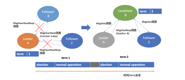 Term:某个节点从成为Leader到下一次竞选的时间,称为一个Term。
