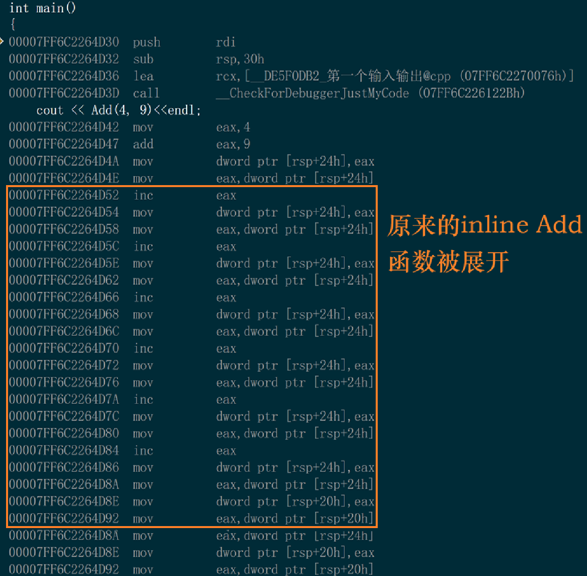 如果编译器决定展开,则不会出现 call ,而是在调用位置直接插入函数体的代码。