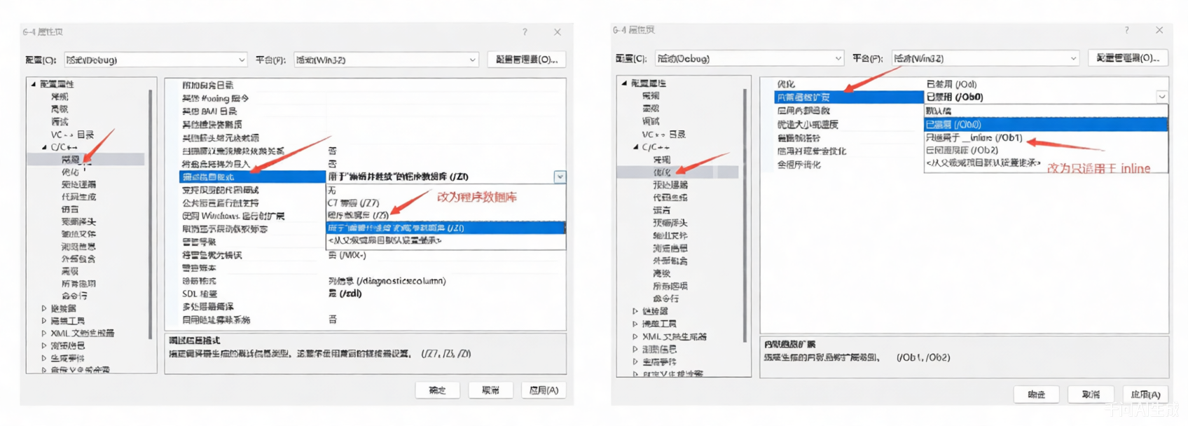 vs编译器debug版本 下面默认是不展开 inline的,这样方便调试,debug版本想展开需要设置一下以下两个地方。