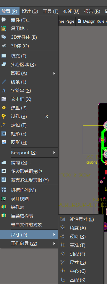 我们找到放置-尺寸-线性尺寸(其他的大家自行探索)。