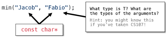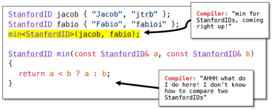 min<StanfordID>(jacob, fabio); // ❌ Compiler error