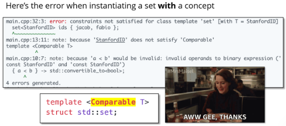 概念仍是一项新功能,STL还未支持它们。