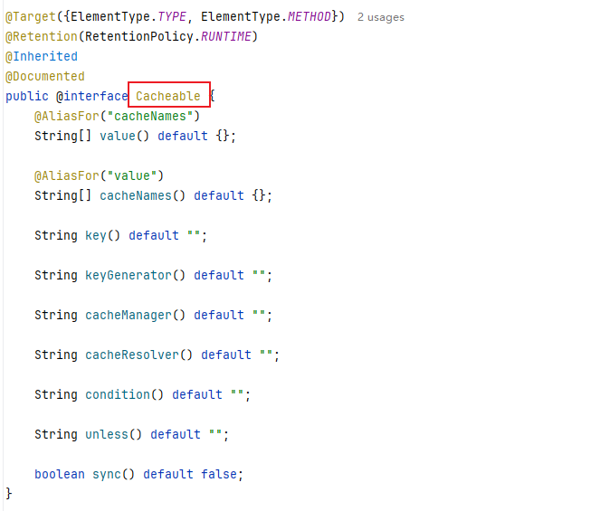 @Cacheable标注在方法上,表示该方法的结果需要被缓存起来;- 缓存的键由
