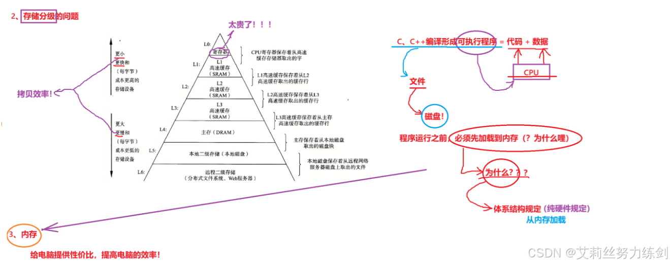 关于第一点,我们在前面的图中已经解释过了,接下来,我们来看看存储分级的问题和内存的问题------
