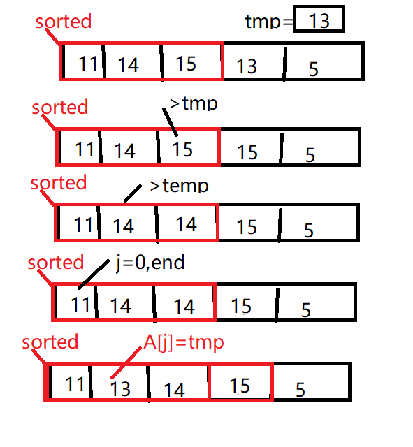 for (j = P; j > 0 && A[j - 1] > Tmp; j--) {