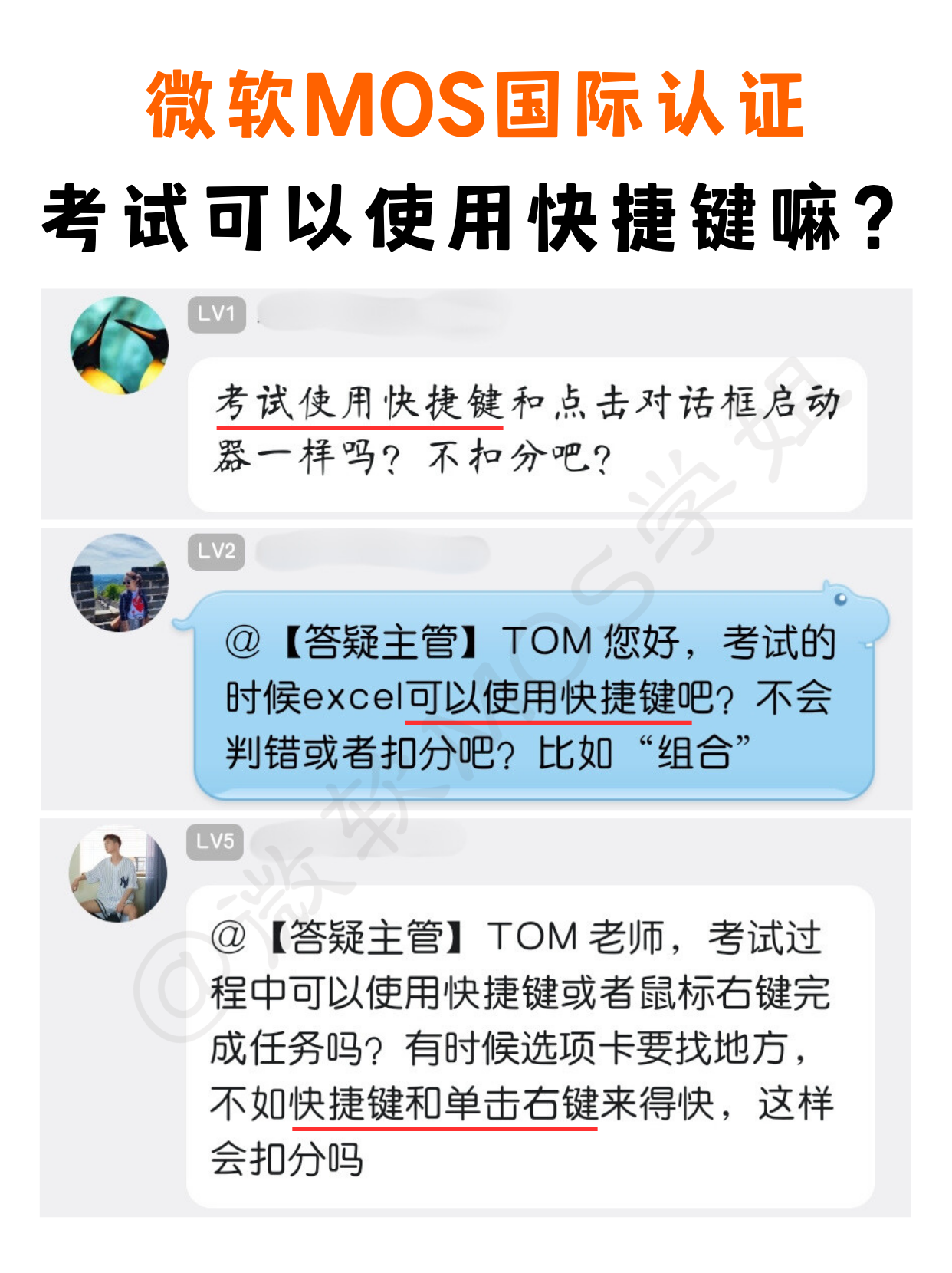 ❓试的时候excel可以使用快捷键吧?会判错或者扣分吗?