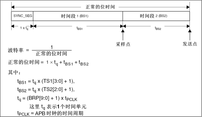 STM32 外设定义的位时序与我们前面解释的 CAN 标准时序有一点区别。