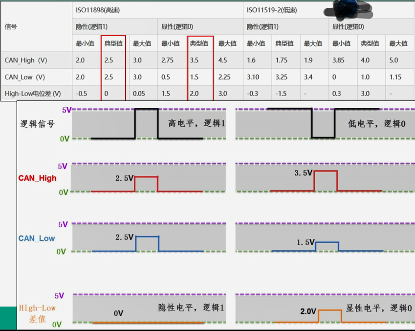 CAN_High及CHAN_Low中走的是一对查分信号 如图
