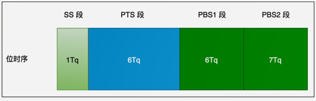 -比如发送单元的发送延长,总线上信号的传播延迟,接受单元的输入延迟等,PTS段就是用来补偿这些因素产生的时间延迟
