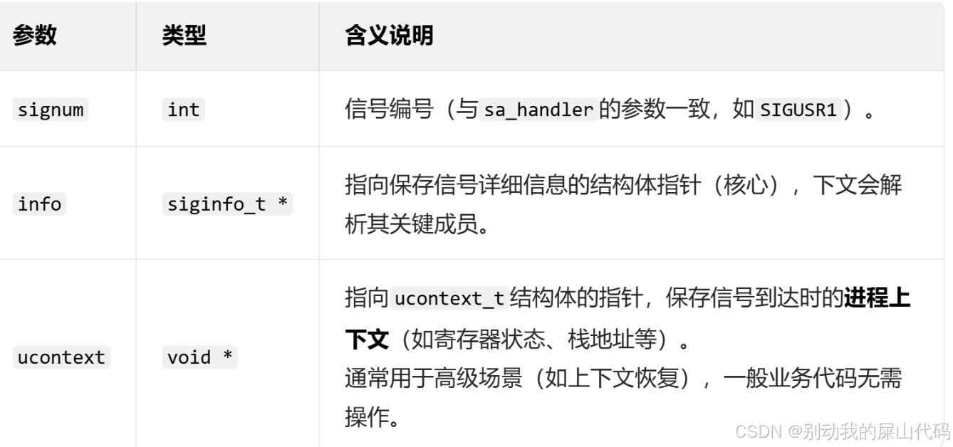 // 2. 带额外信息的信号处理函数(需配合SA_SIGINFO标志)