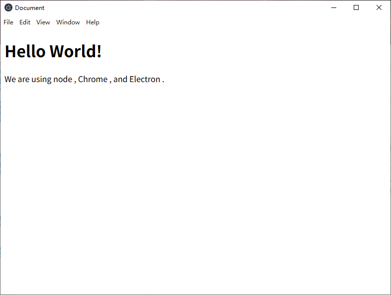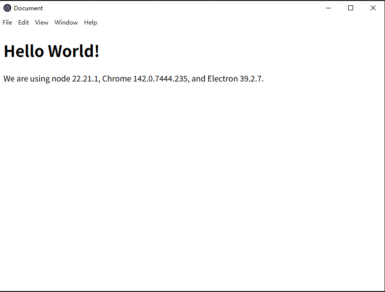 修改后,再次运行 npm start,如下所示,我们成功显示出了 node、Chrome 和 Electron 的版本