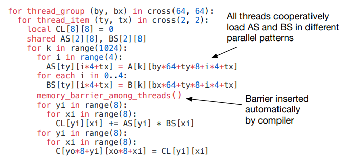 Consequently, TVM lowers the threshold for writing a relavely high-performance kernel. I think there are 2 points deserved us to learn more, which are the schedule primitive and the prediction model.