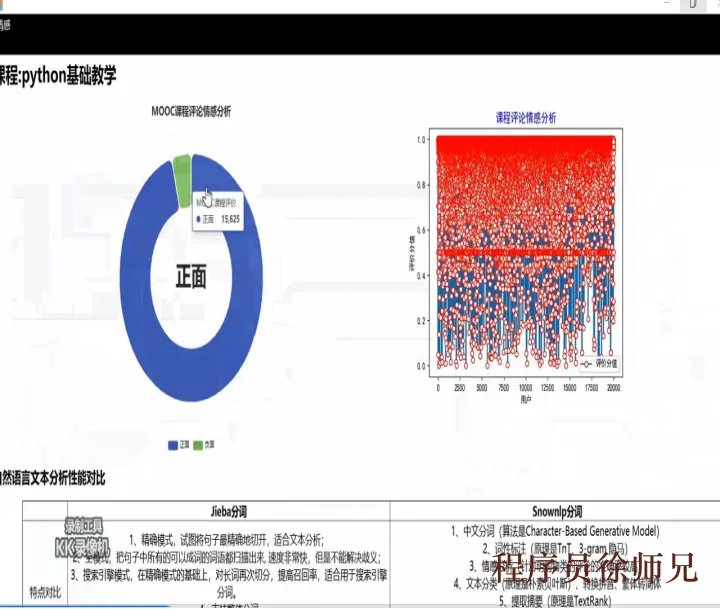 3.前两点有了之后那么接下来我们就是实现的是我们的课程评价情感分类系统的具体功能能,可以通过所取到的大数据通过人工智能的方式进行情感分类分析,找出我们所要看到的正面评价和负面评价。当然最好我们还是能够通过图形的比例来实现,就像人们经常说的数据是会说话的另一种动物。我们通过图形的方式把数据所要表达的事情完完整整的体现出来。