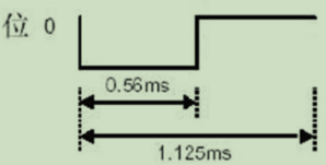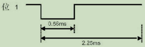 一个逻辑 1 传输需要 2.25ms(560us 脉冲+1680us 低电平),一个逻辑 0 传输需要 1.125ms(560us 脉冲+560us 低电平)