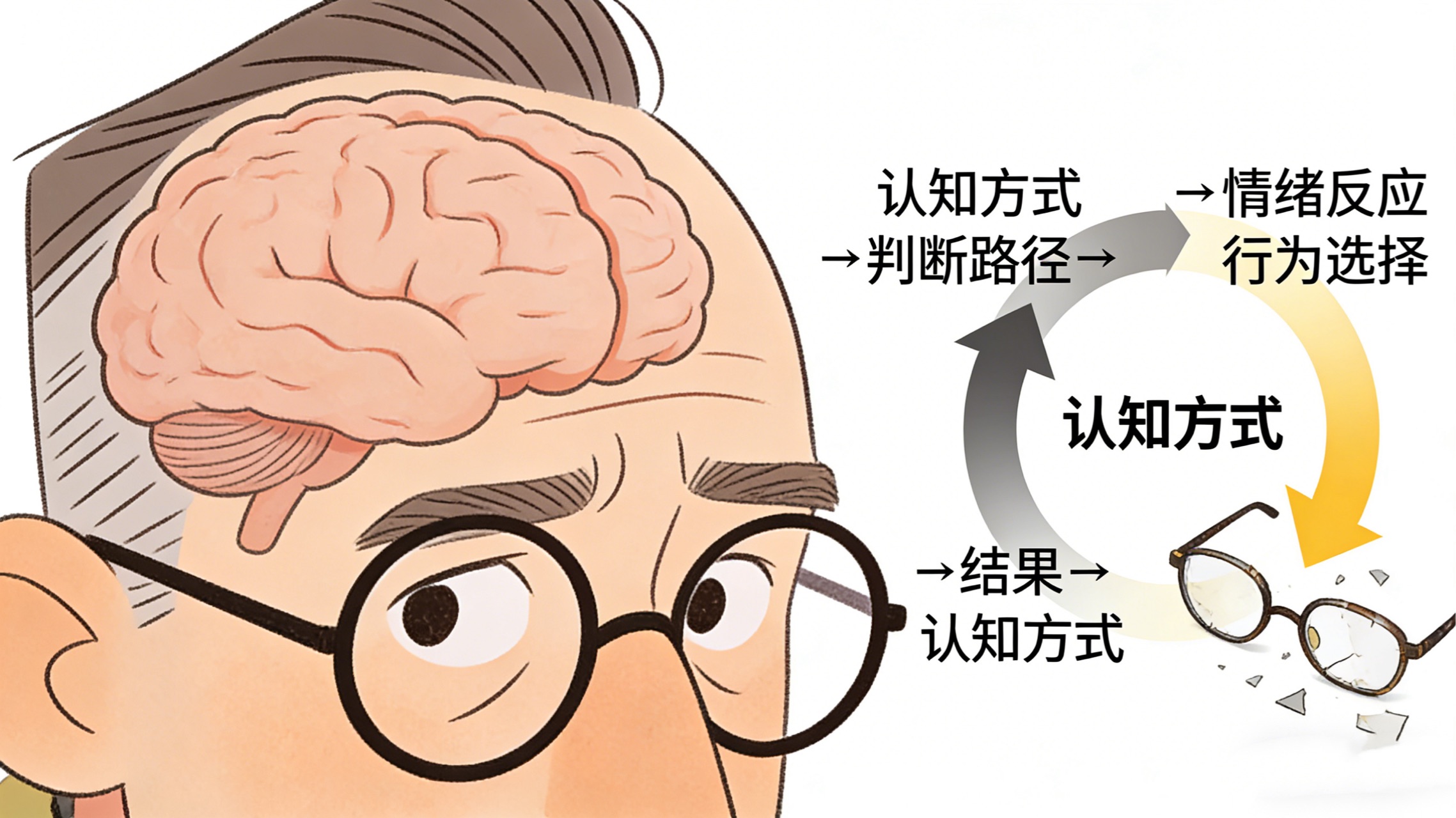 人并不是每天"自由选择"自己的行为。大多数时候,我们是在一个极其稳定的内在结构中自动反应:认知方式 → 判断路径 → 情绪反应 → 行为选择 → 结果,而结果,又反过来强化原来的认知方式。