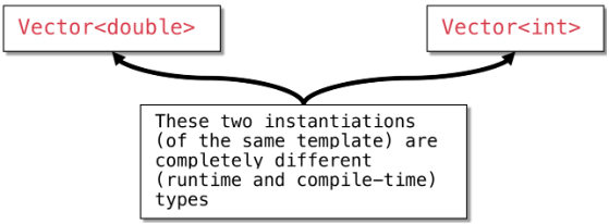 注意,模板类并非类 。模板只有在填充了所有模板参数后才会成为类。从表示法上来说,vector 是一个类模板,而 vector是一个实际的类。实例化的一个结果是,vector和 vector是本质上不同的类型。尽管它们是从同一个模板实例化而来,但它们的区别就如同我们手动编写的 int_vector 和 double_vector 之间的区别一样。例如,一个期望接收 vector的函数无法接受 vector。要编写一个能够接受任何vector的函数,我们需要将该函数本身定义为模板。这一点将在下一章中讨论。