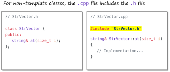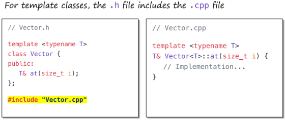 模板类语法会显式实例化模板,这样包含vector.h的另一个文件就能创建vector的int、double或std::string类型,并使用其方法。