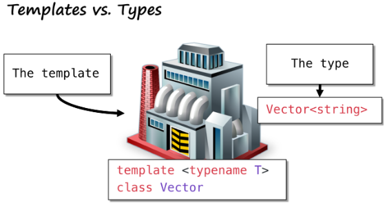 template <typename T> // vector 是一个模板,它接收一个类型 T 的名称。