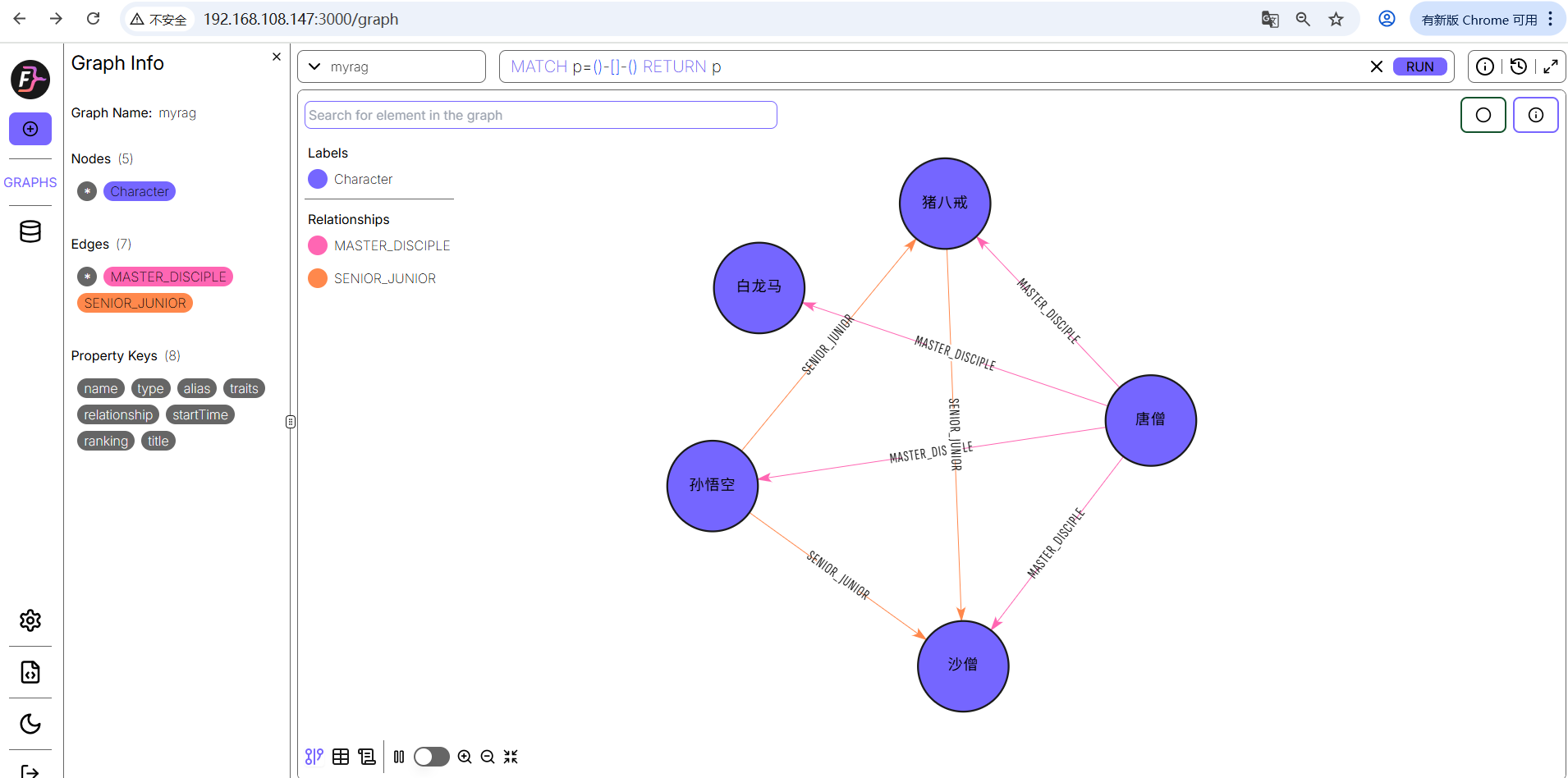 CREATE (唐僧)-[:师徒关系 {关系: '师父', 开始时间: '鹰愁涧'}]->(白龙马)