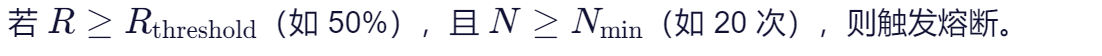 - 系统统计异常比例,当达到熔断阈值(如5%)时,触发熔断