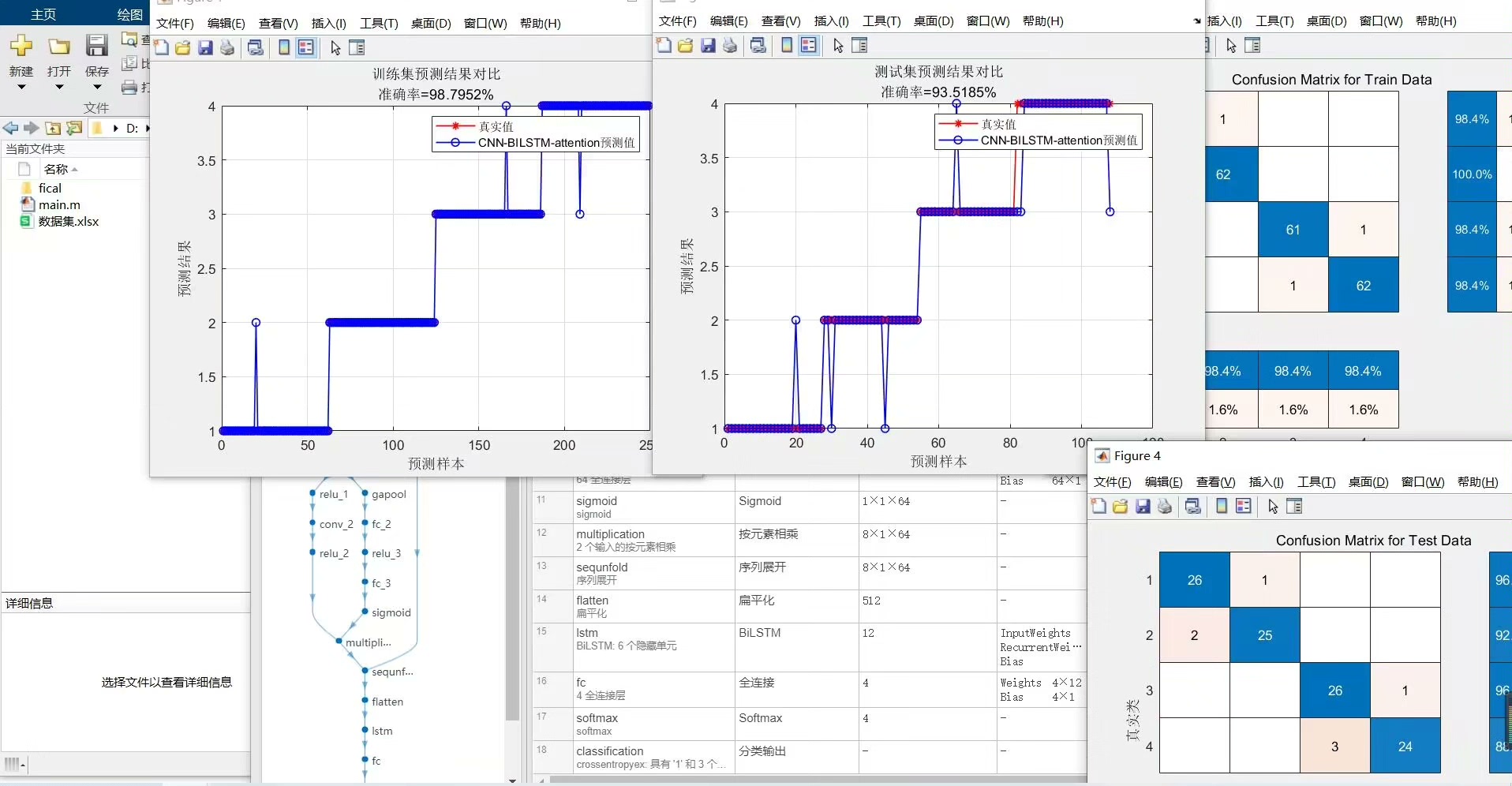 CNN-BILSTM-Attention基于卷积神经网络-双向长短期记忆网络结合注意力机制CNN-BILSTM-Attention分类预测,matlab代码,2020版本及以上。 多特征输入单输出的二分类及多分类模型。 程序内注释详细替换数据就可以用。 程序语言为matlab,程序可出分类效果图,迭代优化图,混淆矩阵图。 1.多特征输入,可改分类预测也可以改成回归预测或时间序列预测模型,Matlab版本要在2020B及以上。 2.卷积神经网络(CNN):捕捉数据中的局部模式和特征。 (LSTM-BILSTM-GRU-BiGRU):捕捉关键特征向量的非线性动态变化规律。 注意力机制(Attention):为模型提供了对关键信息的聚焦能力,从而提高预测的准确度。