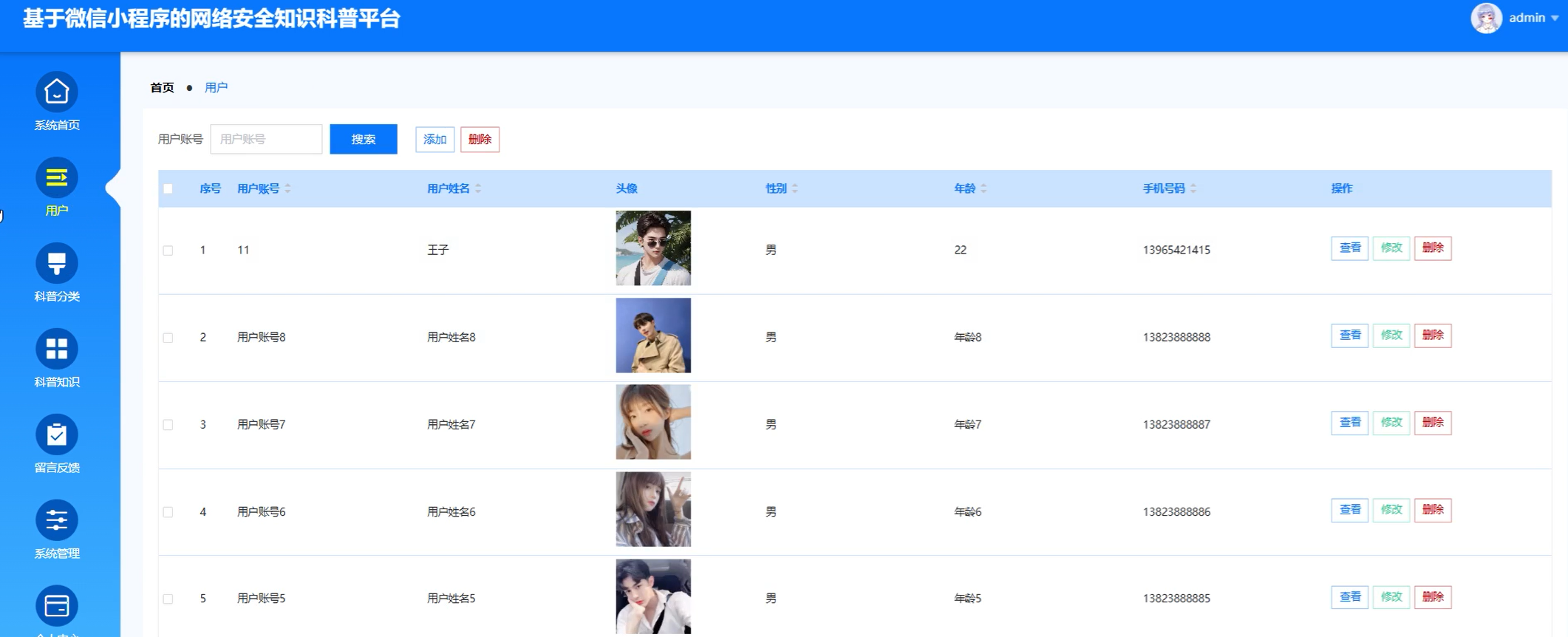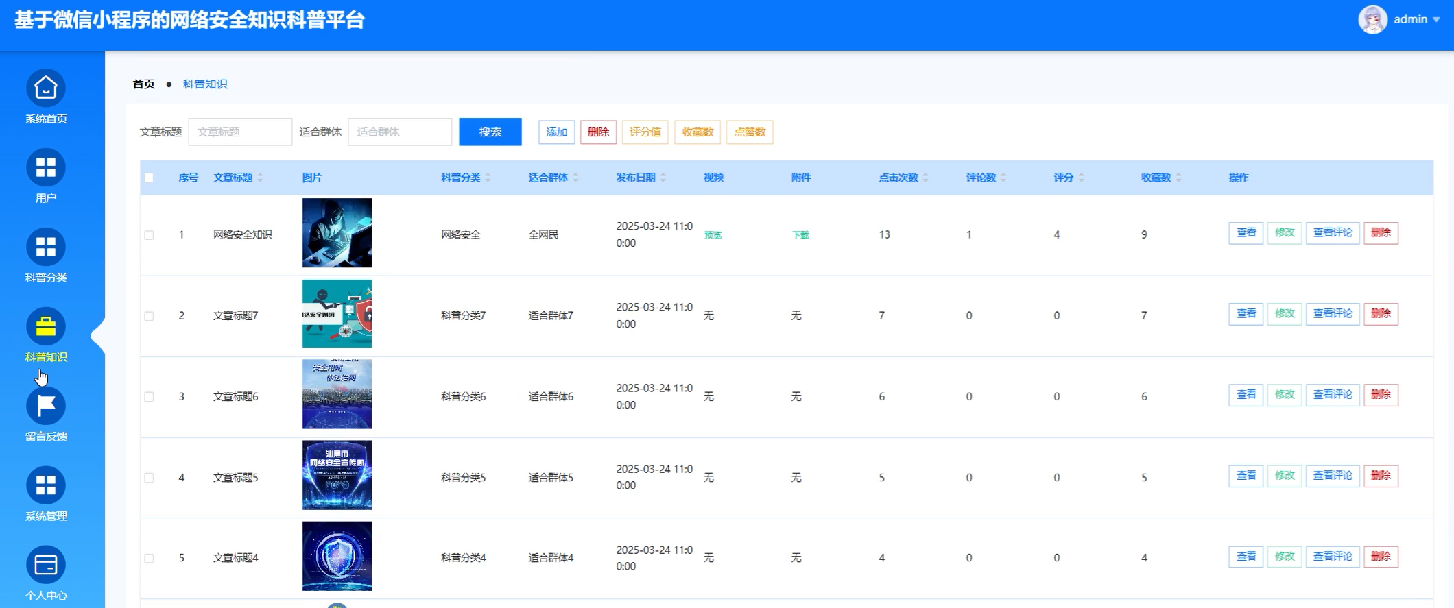 在数字化浪潮席卷全球的当下,网络已深度融入人们生活的方方面面,成为信息获取、社交互动、经济交易的重要载体。然而,随着网络应用的广泛普及,网络安全威胁也如影随形,呈现出愈发复杂和严峻的态势。网络诈骗手段层出不穷,从传统的虚假投资、仿冒客服诈骗,到利用AI技术进行深度伪造的诈骗,令人防不胜防;个人信息泄露事件频发,不法分子通过窃取用户信息,进行精准诈骗或非法交易,给用户带来巨大的经济损失和精神困扰;恶意软件攻击也屡见不鲜,它们潜伏在用户的设备中,窃取数据、破坏系统,严重威胁着网络空间的安全稳定。据统计,2024年全国网络诈骗案件中,45%的受害者因缺乏基础防护知识而受骗,青少年个人信息泄露事件同比增长32%,中老年群体在虚假投资、仿冒客服类诈骗中占比超60%。传统的网络安全知识科普方式,如官方网站、公众号等,存在信息分散、内容晦涩难懂、缺乏实践场景等问题,难以满足公众对网络安全知识的迫切需求。因此,开发一款基于微信小程序的网络安全知识科普平台系统,具有重要的现实意义。