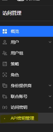 ### 点击网页右上角你的账号名称,进入"访问管理" -\> "API密钥管理"。