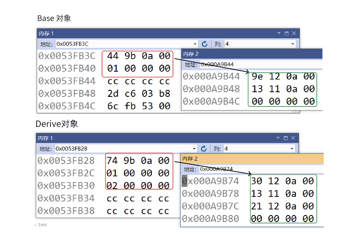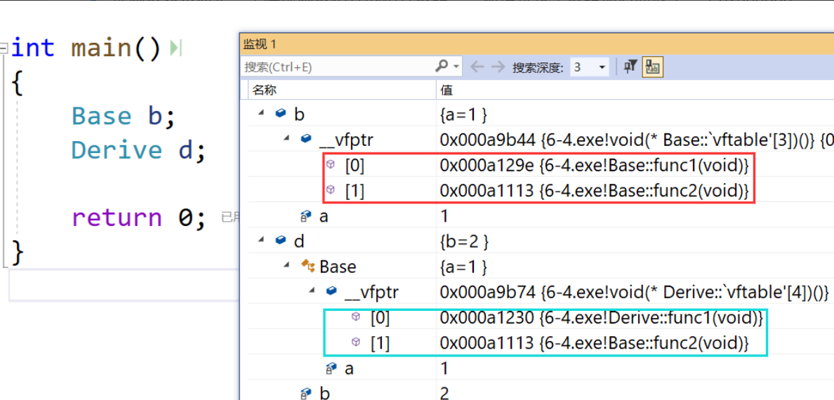 Derive的虚表类似[&Derive::func1, &Base::func2, &Derive::func3]; -