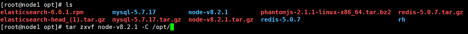 第二步 tar zxvf node-v8.2.1.tar.gz -C /opt ------------------------------解压node安装包至opt下