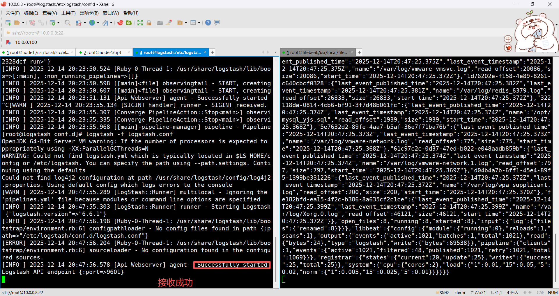 第五步 启动filebeat(收集并传输)与logstash(接收日志文件)