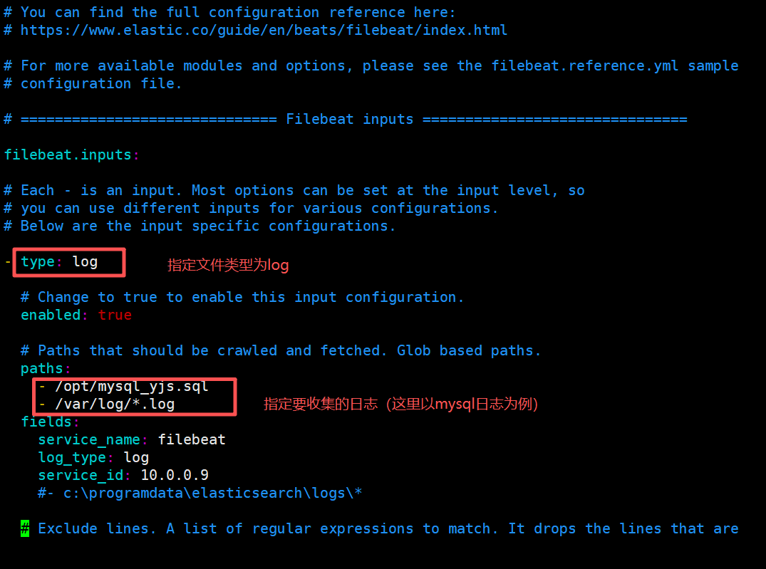 vim /usr/local/filebeat/filebeat.yml ------------------------编辑filebeat配置文件