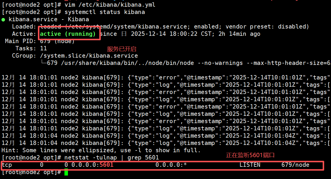 netstat -tulnap | grep 5601 ------------------查看5601端口是否正在监听