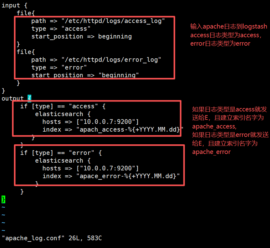 vim /etc/logstash/conf.d/apache_log.conf ------------------------编辑apache日志