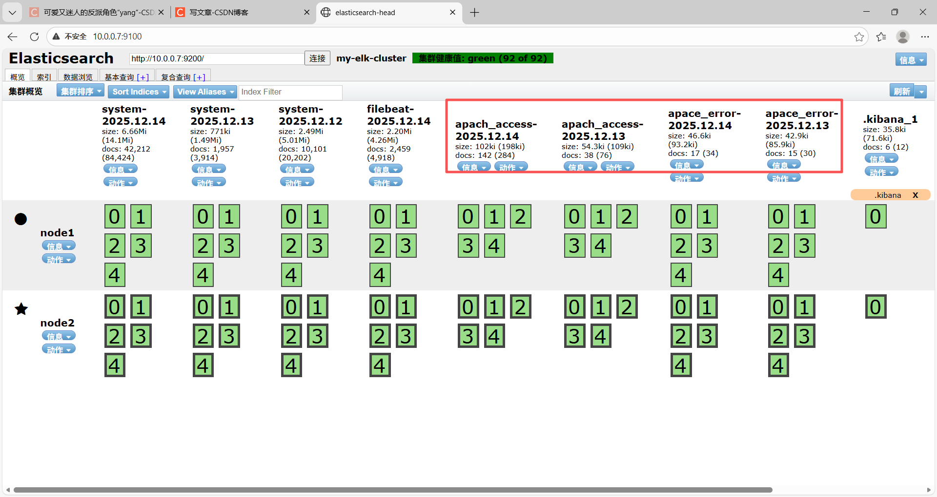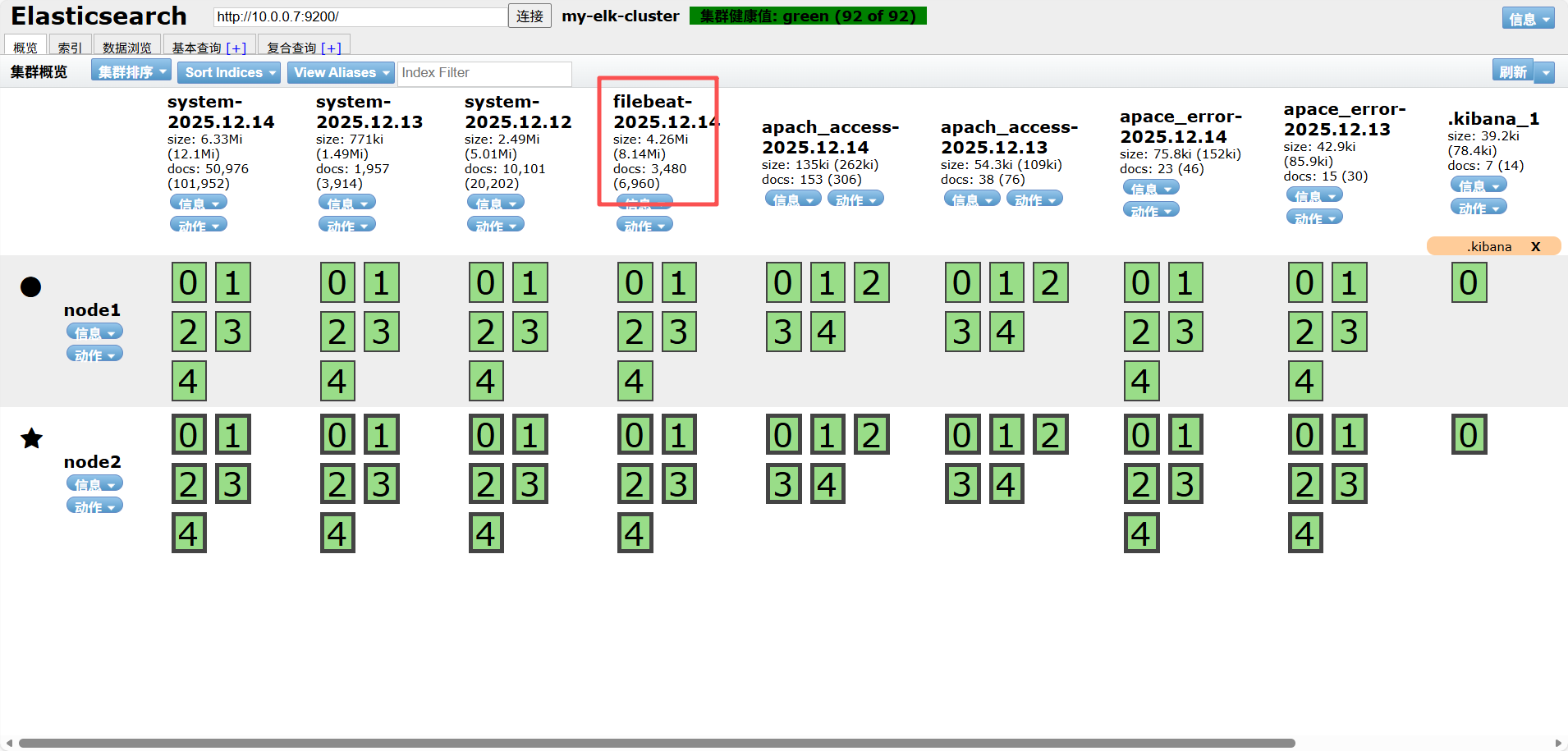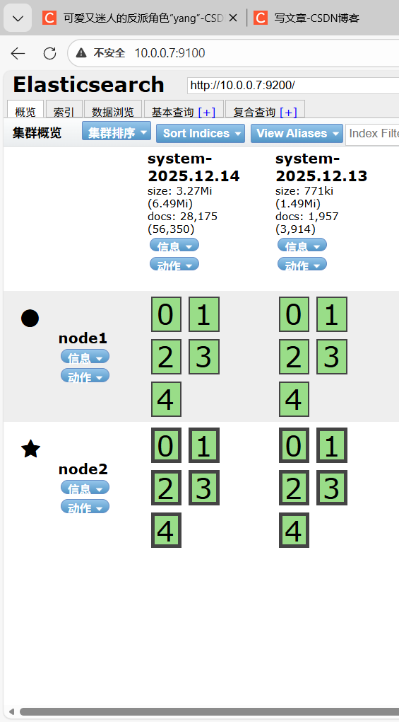 第五步 浏览器访问E的ip与可视化端口查看是否索引创建成功