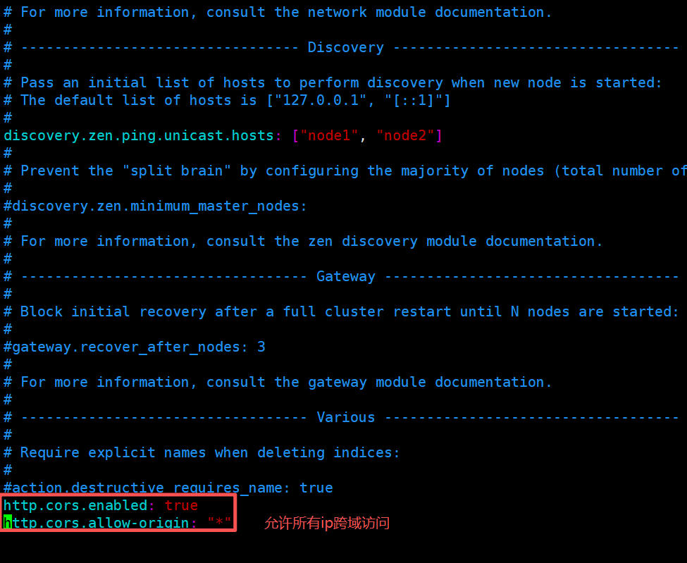 discovery.zen.ping.unicast.hosts: ["node1", "node2"] ------------------------指定要发现的节点 node1、node2