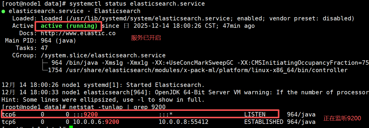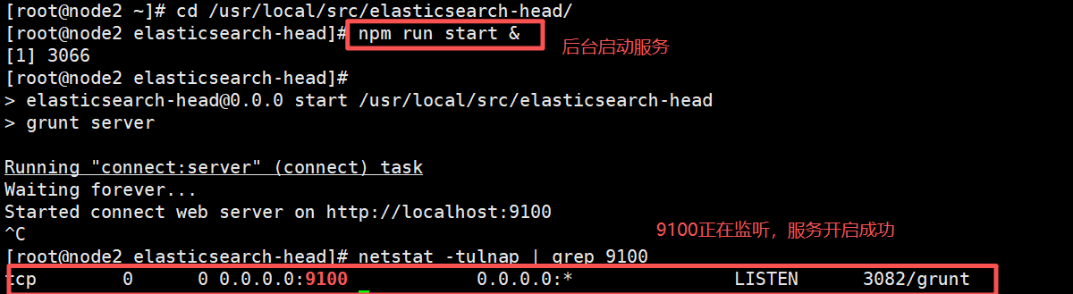 netstat -tulnap | grep 9200 ------------------------监听9200端口,查看是否开启成功