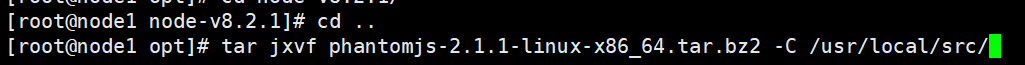第一步 tar jxvf phantomjs-2.1.1-linux-x86_64.tar.bz2 -C /usr/local/src/ ------------------------解压phantomjs安装包至/usr/local/src下