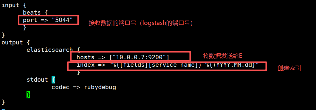 在logstash中创建一个文件用于接收filebeat与传输给E数据