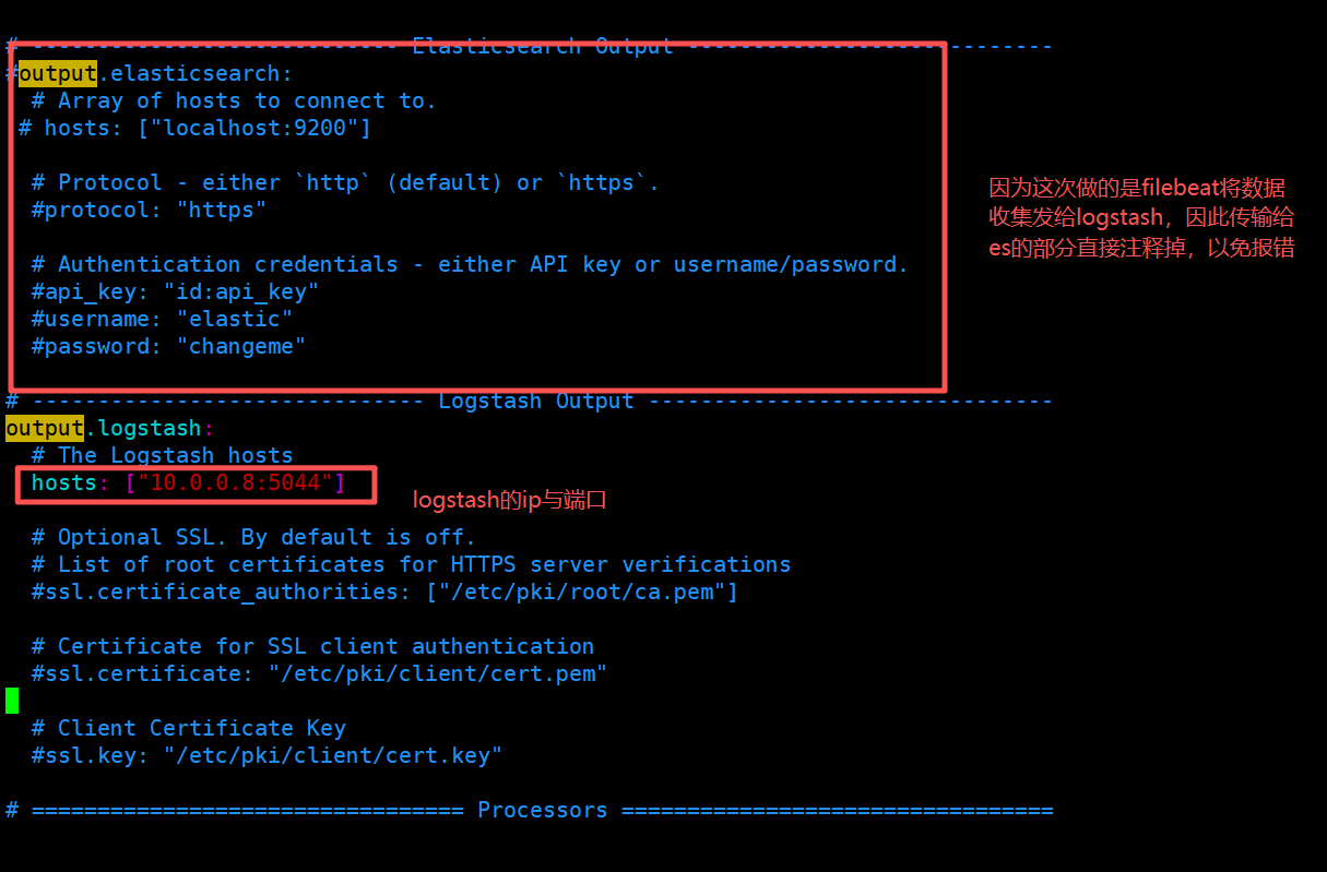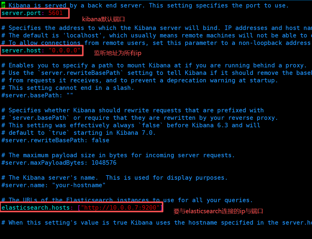 elasticsearch.hosts: ["http://10.0.0.7:9200"] ------------------第28行设置与E连接的ip与端口(要拿数据的地址)