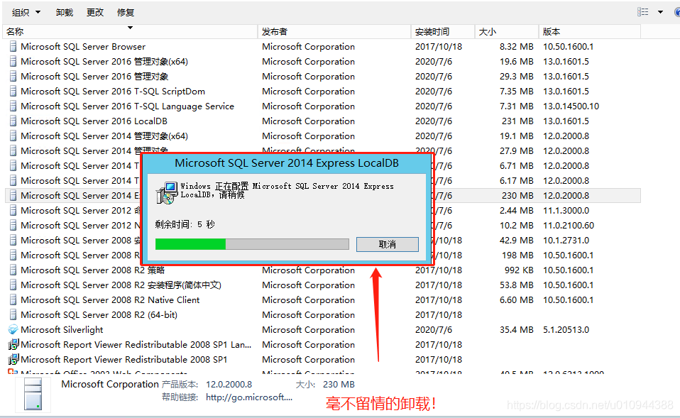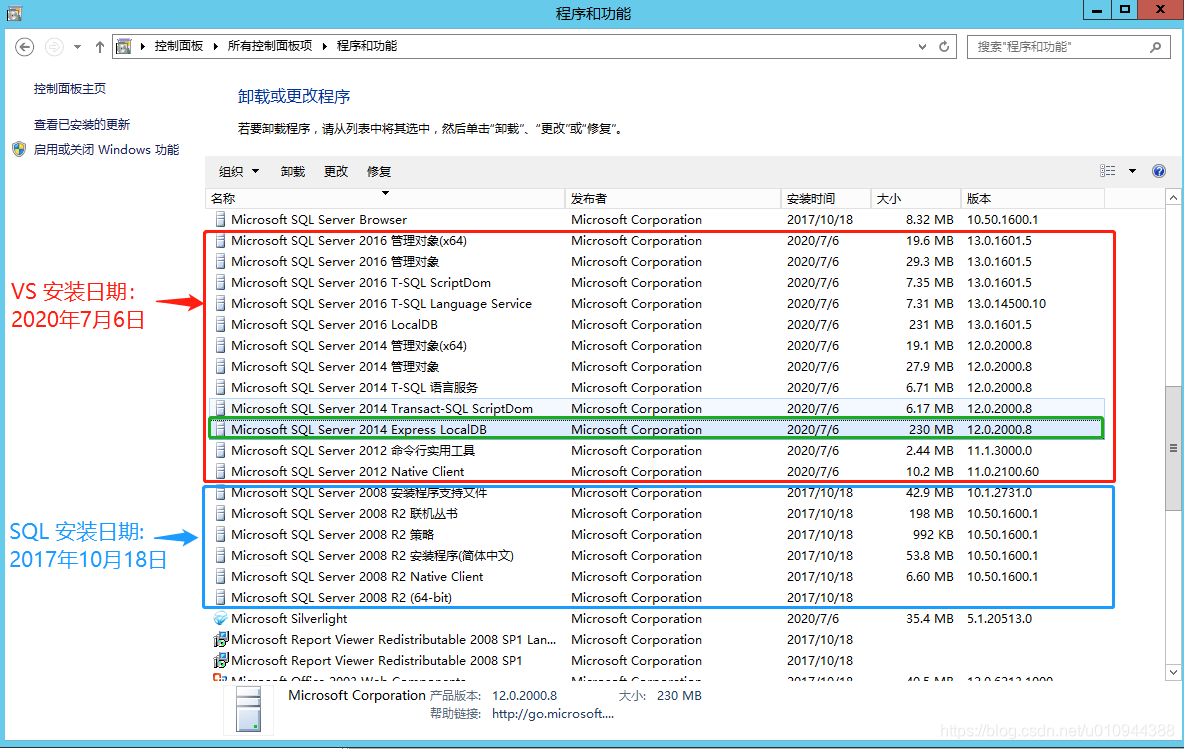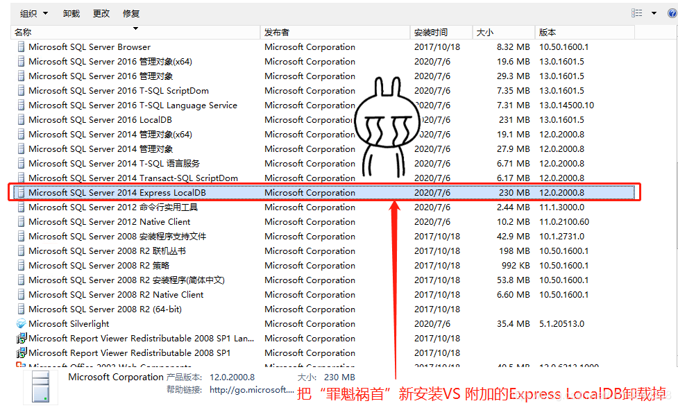 把"罪魁祸首"新安装的VS 2015附加的Microsoft SQL Server 2014 Express LocalDB卸载掉